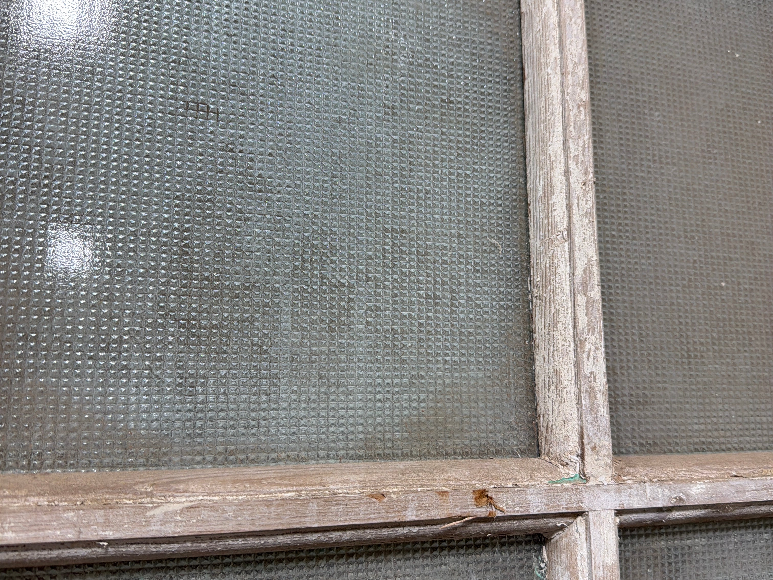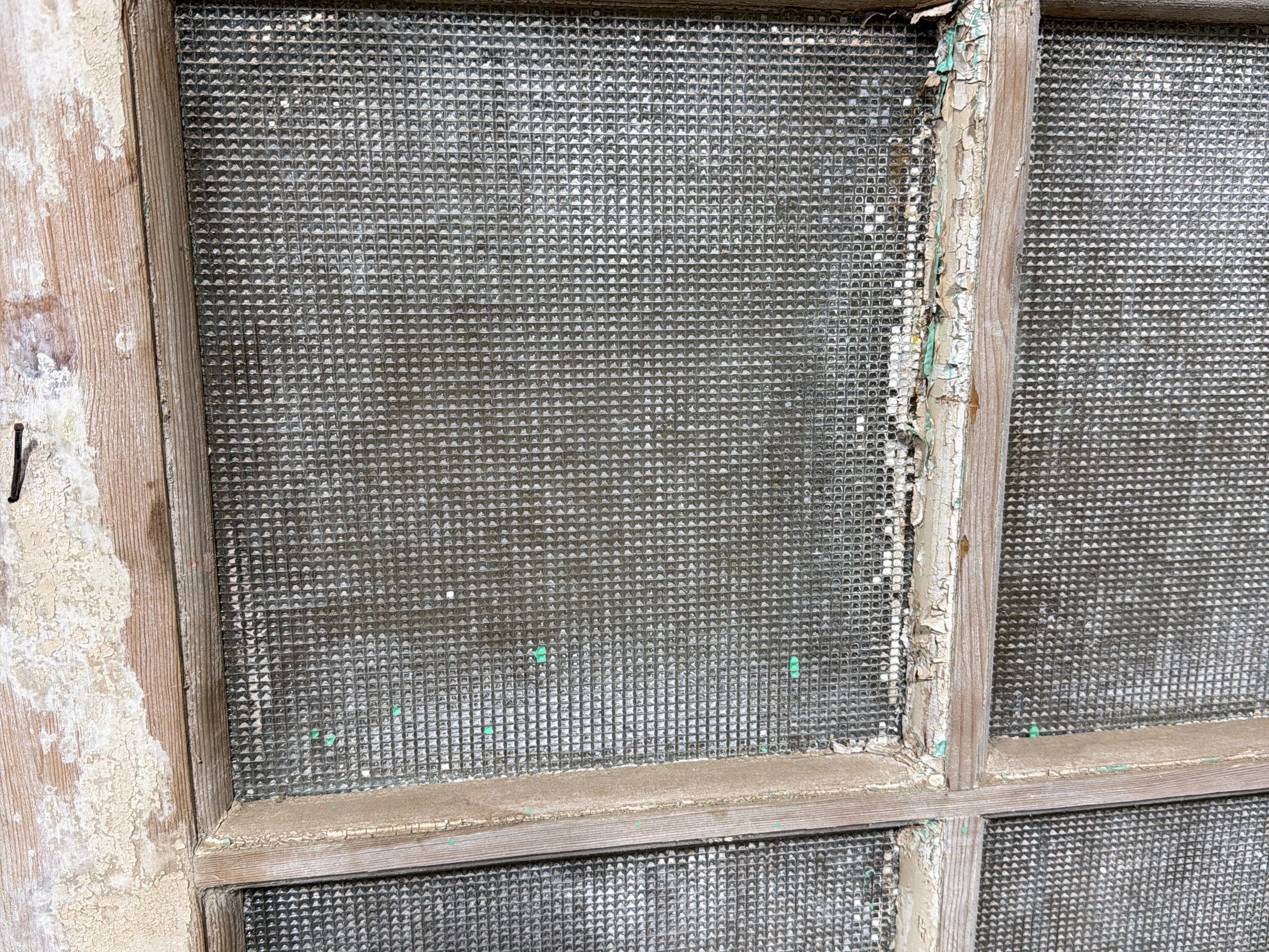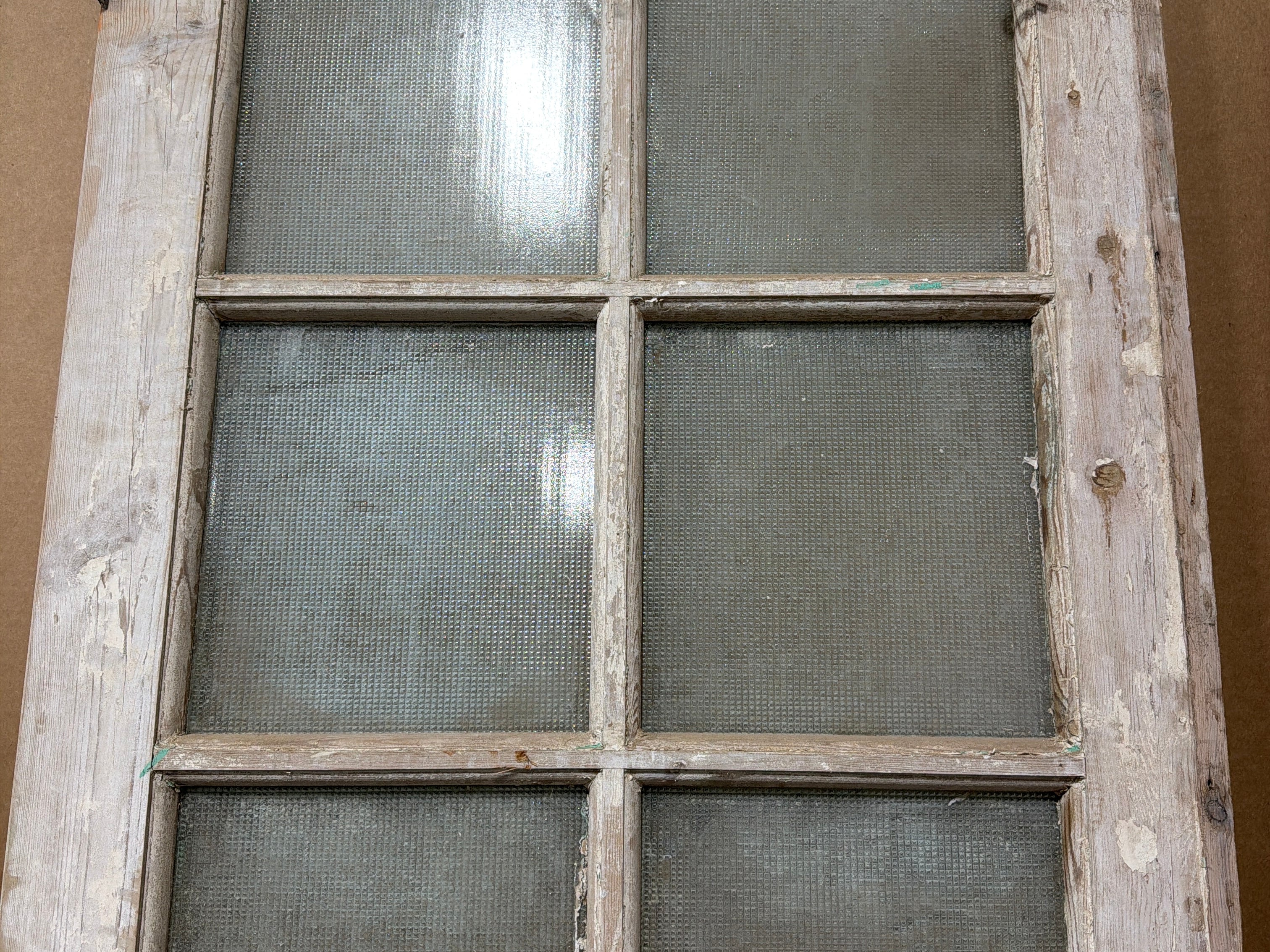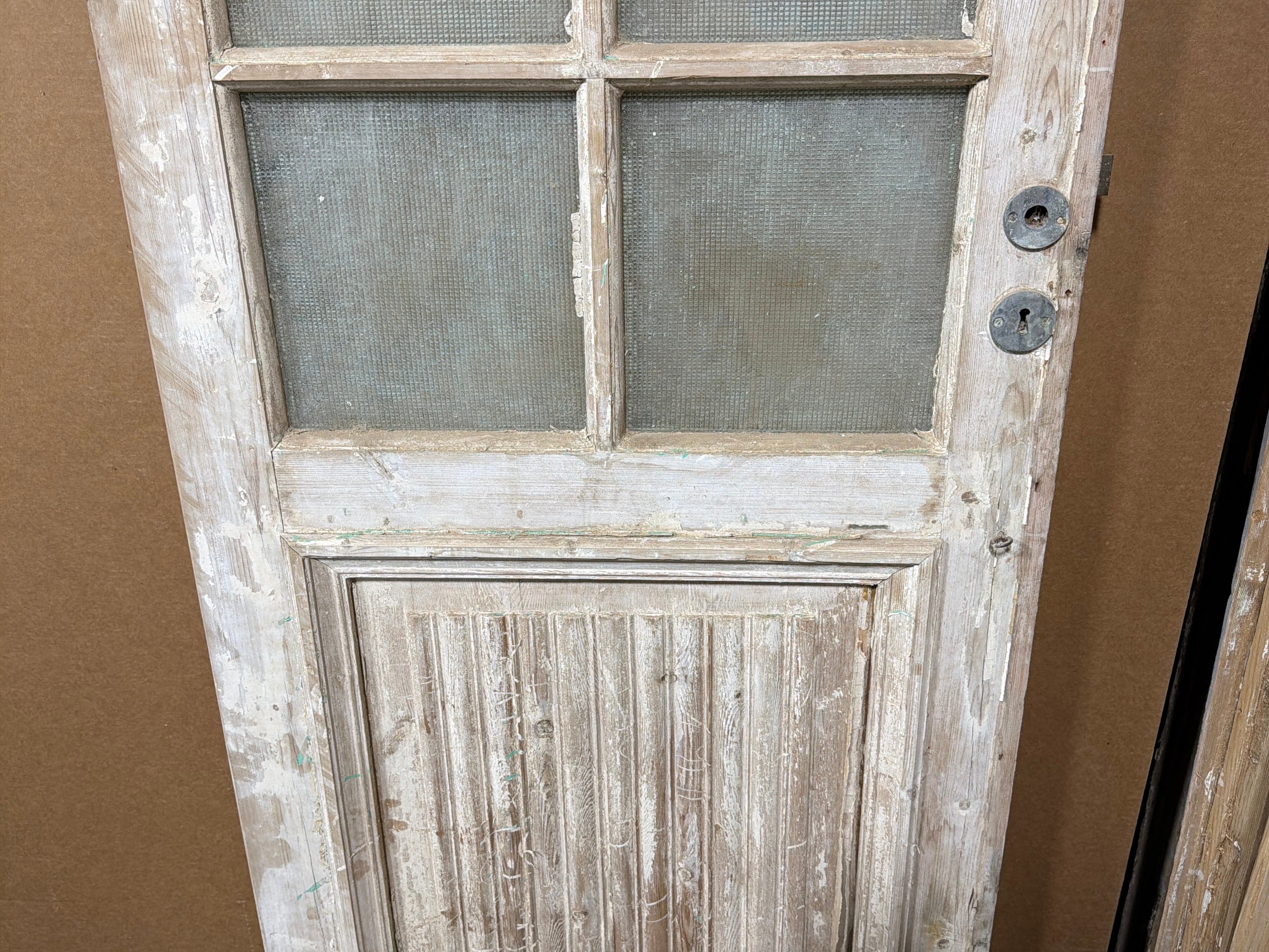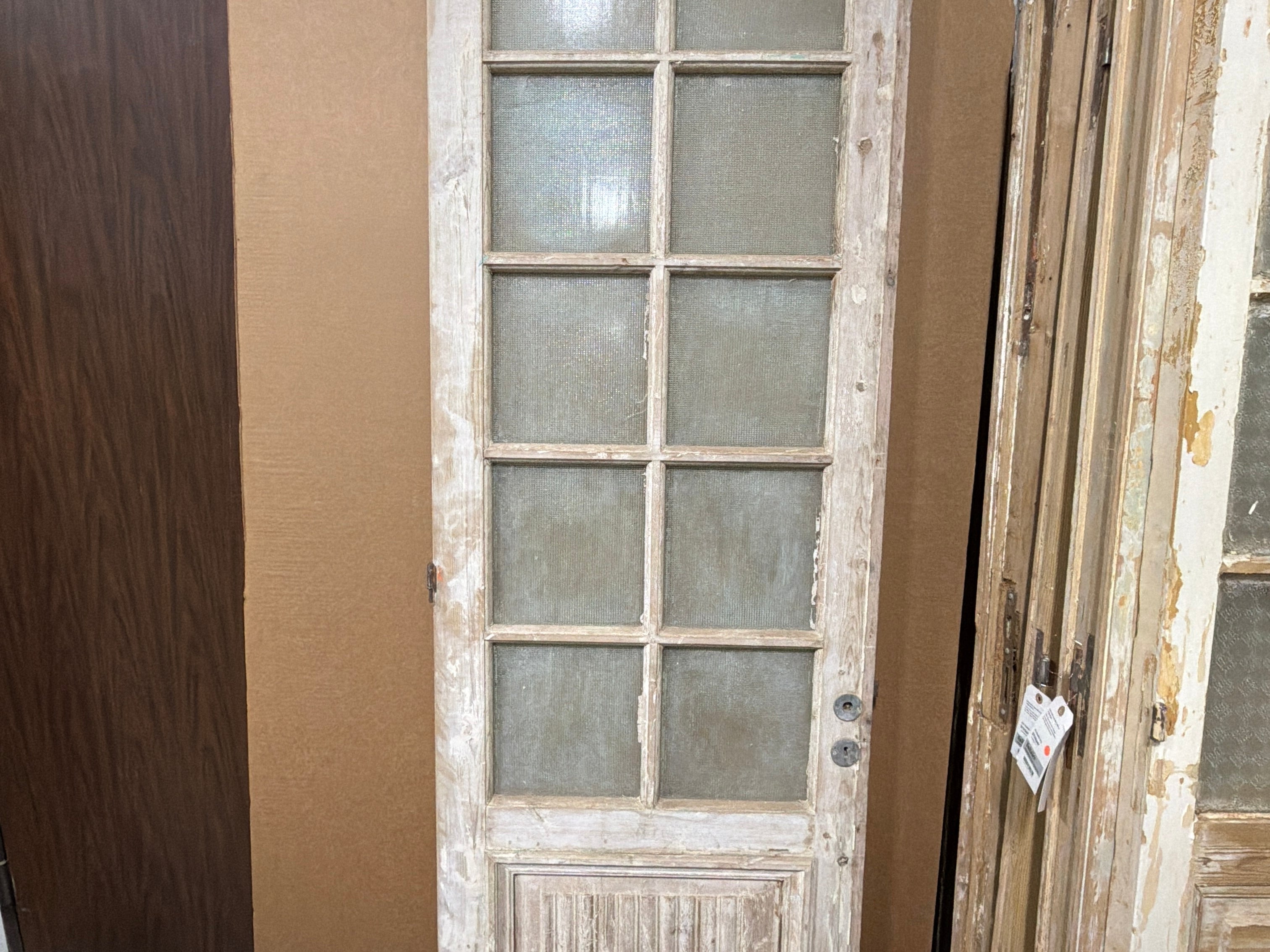 #1282 Doors with Lites in Good condition. Dimensions: 28.5in wide 96in tall 1.75in deep. Sold as a Single. Includes Antique Glass.