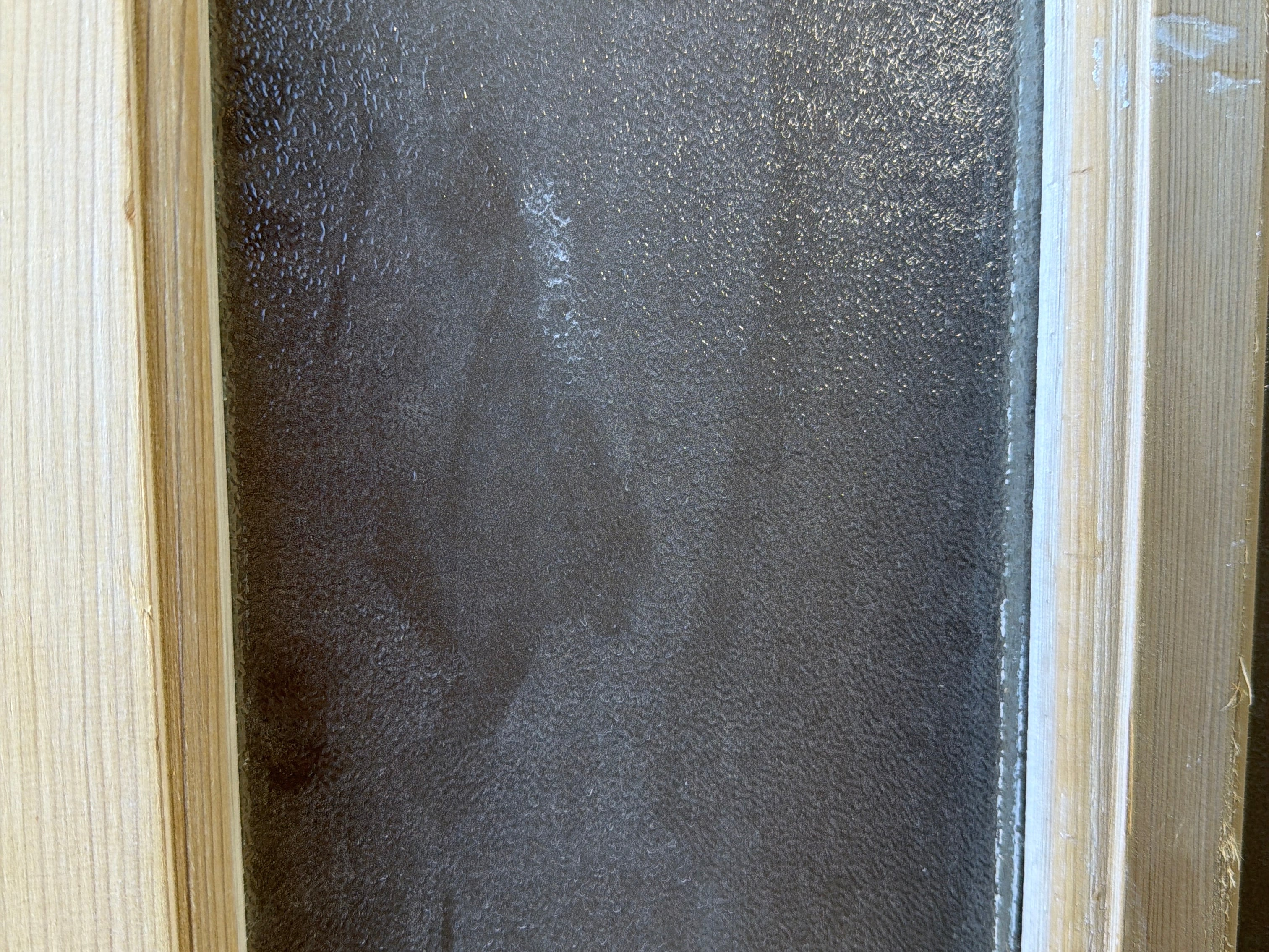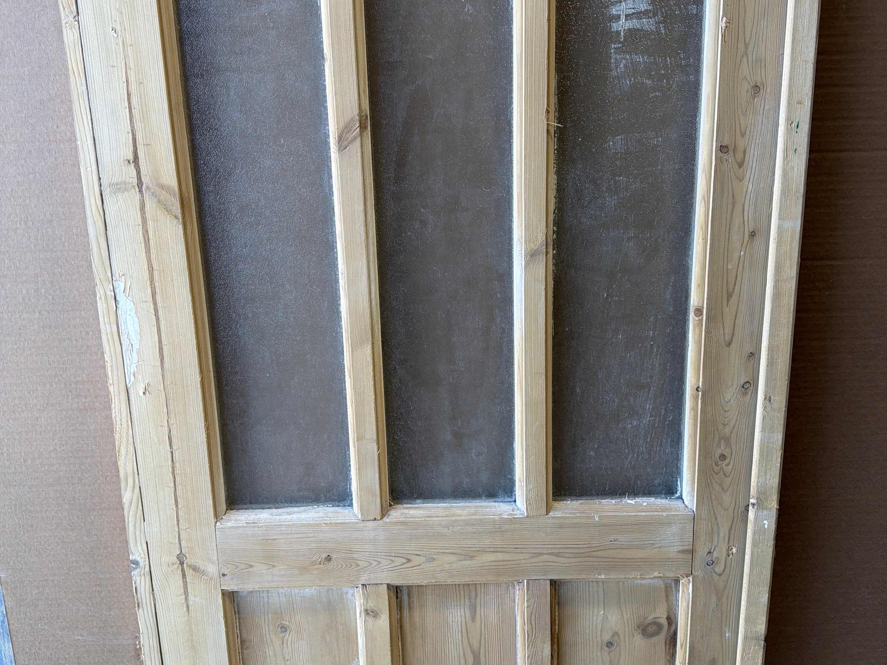 #1270 Doors with Lites in Average condition. Dimensions: 28in wide 85in tall 1.75in deep. Sold as a Single. Includes Antique Glass.