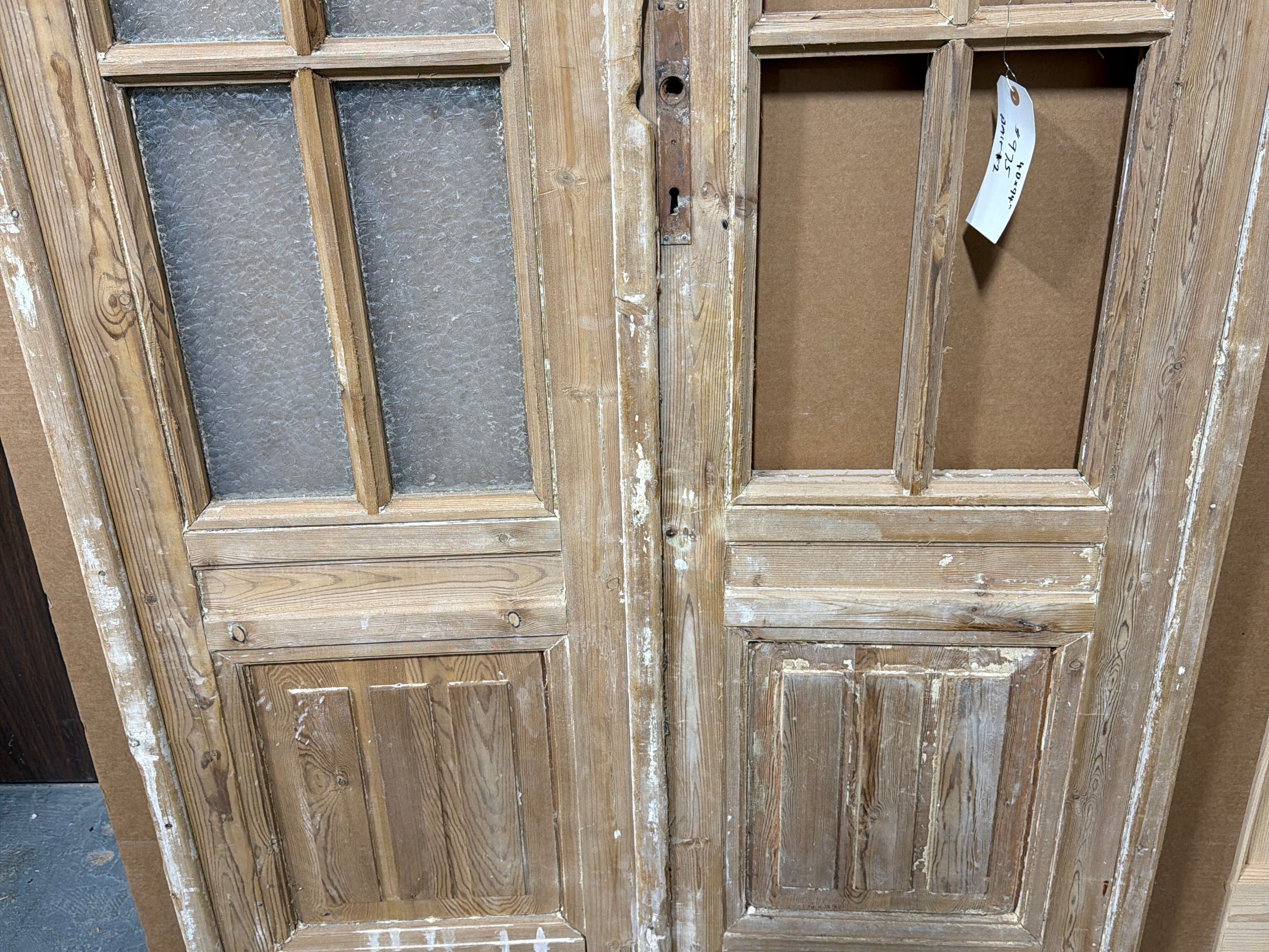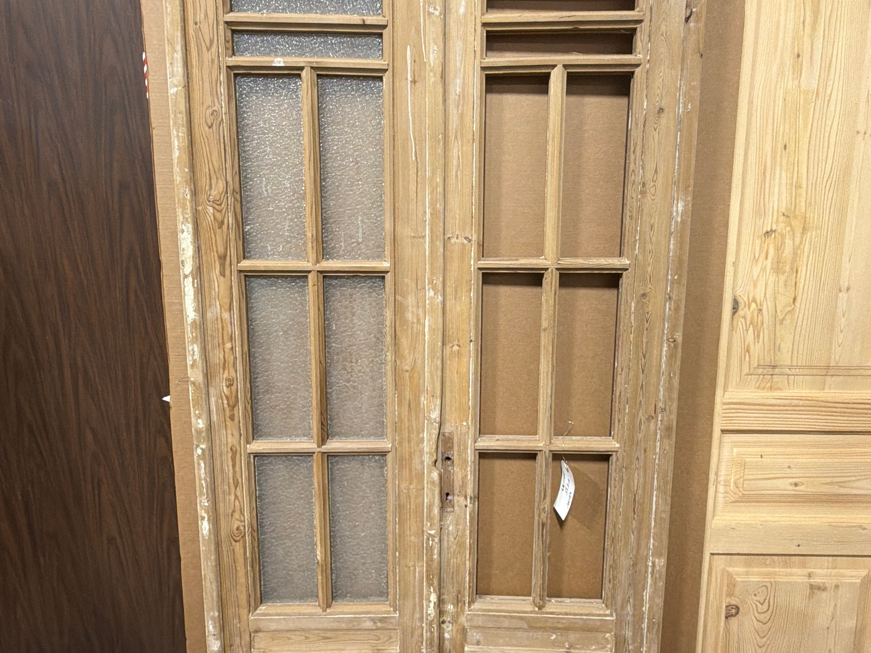 #1278 Doors with Lites in Average condition. Dimensions: 40in wide 94in tall 1.75in deep. Sold as a Pair.