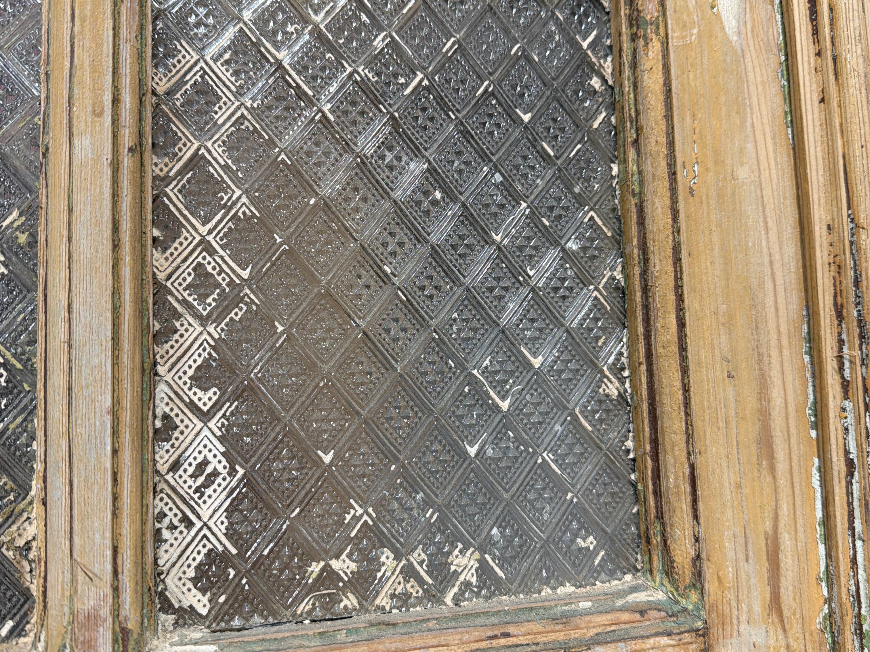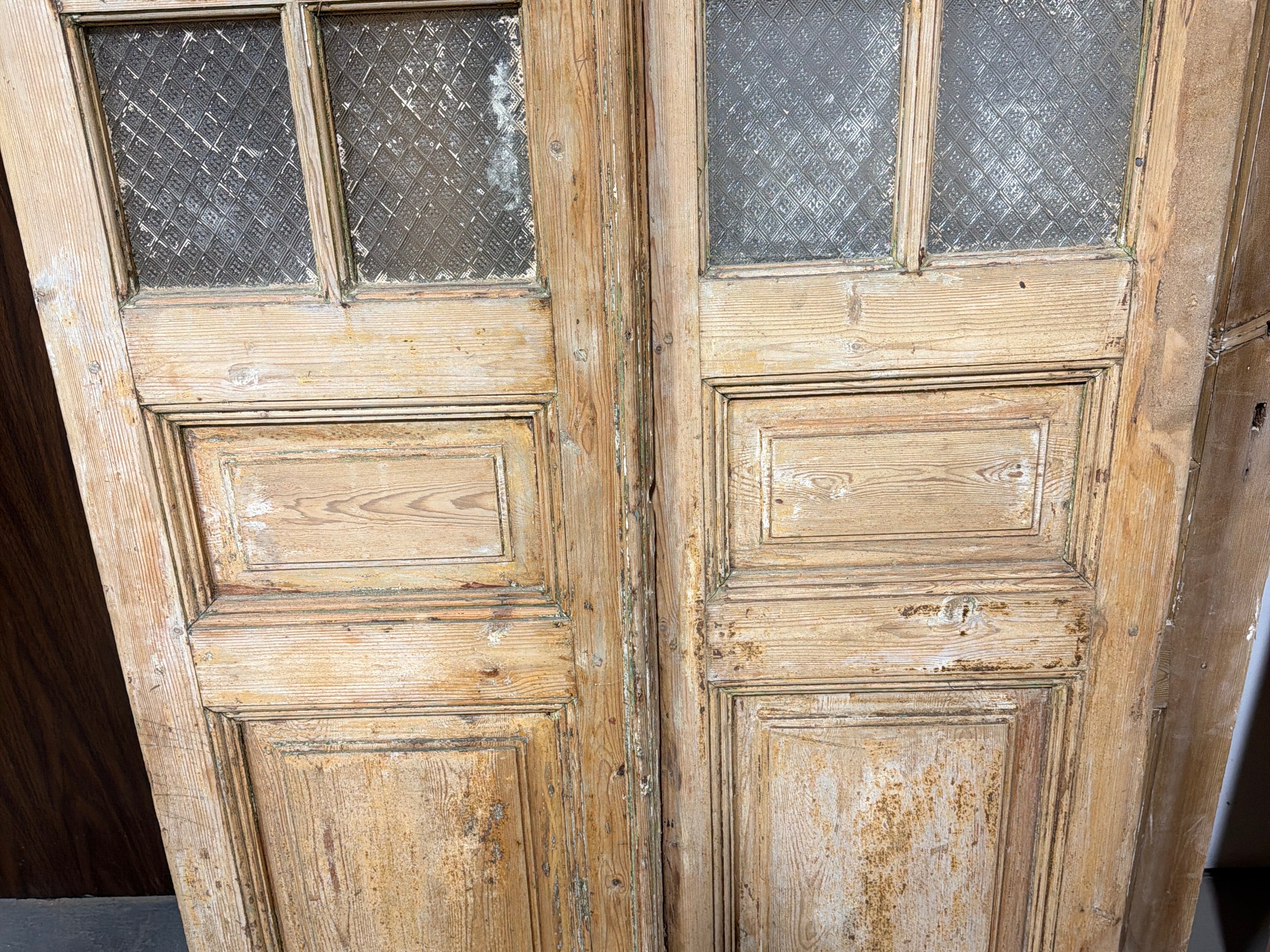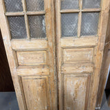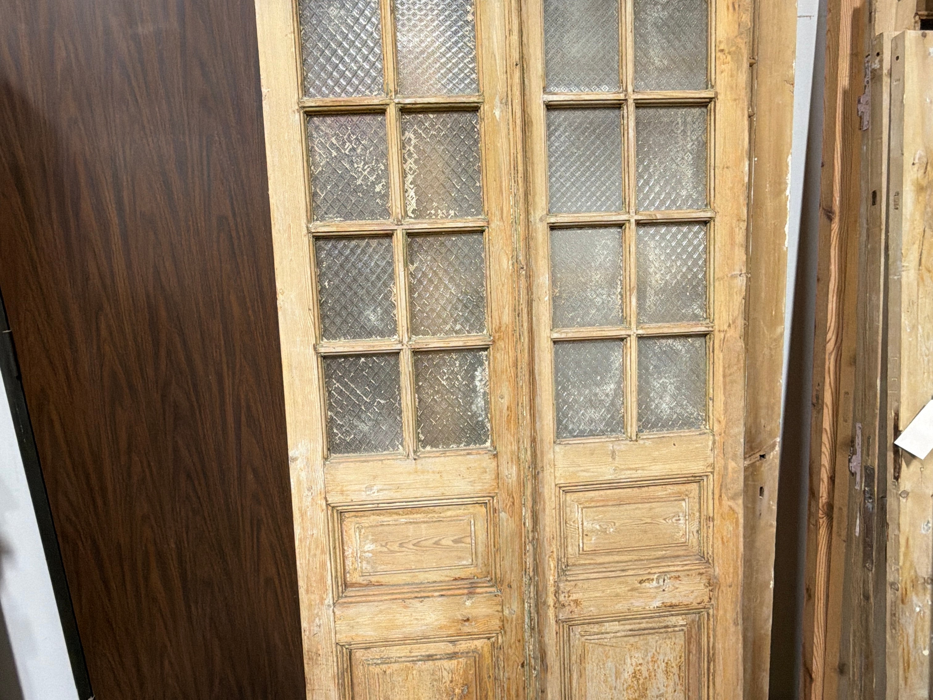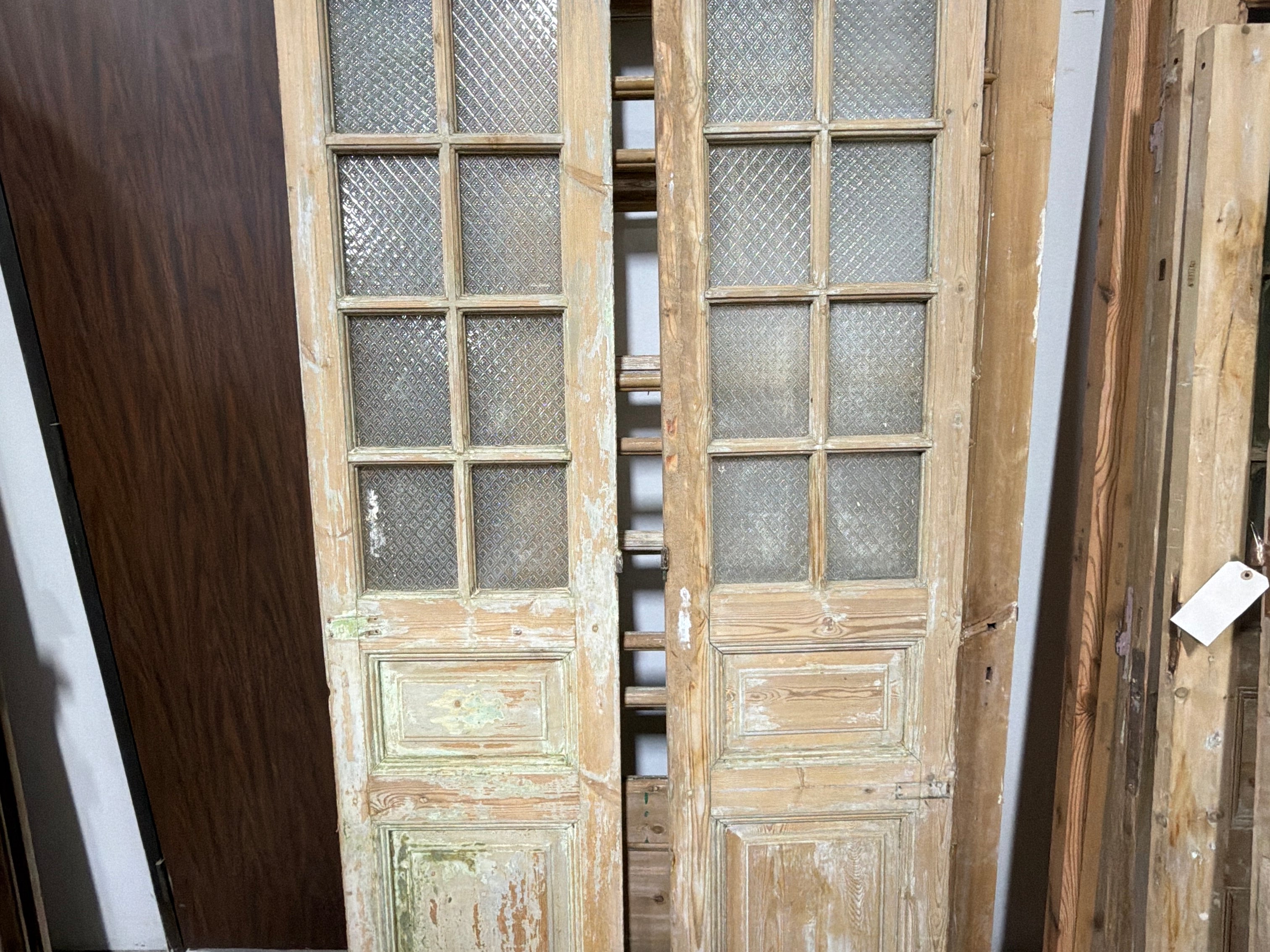 #1274 Doors with Lites in Average condition. Dimensions: 40in wide 97in tall 1.75in deep. Sold as a Pair. Includes Antique Glass.