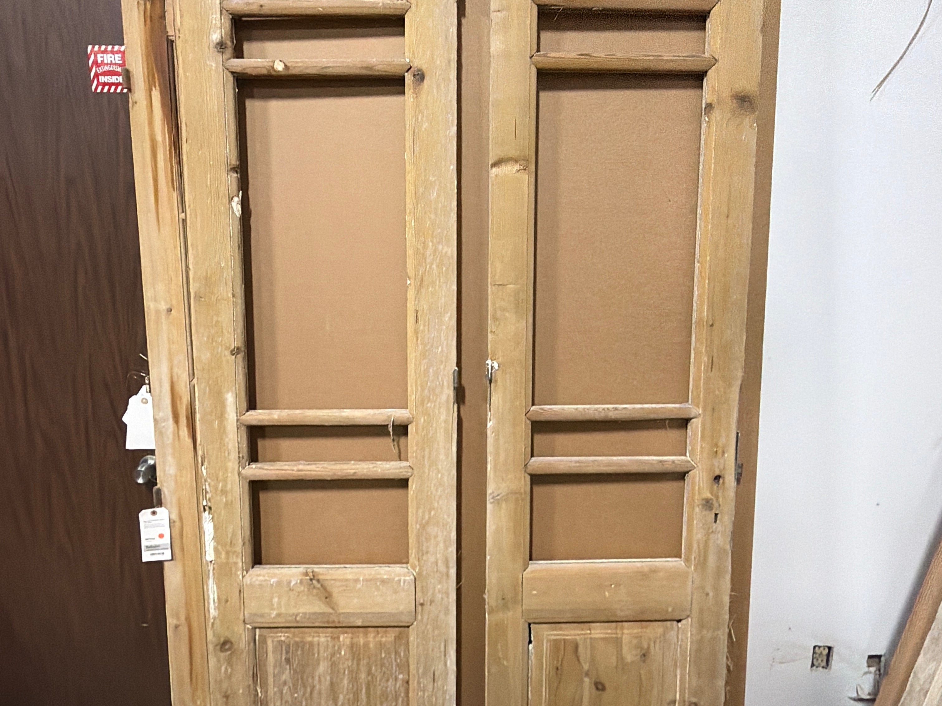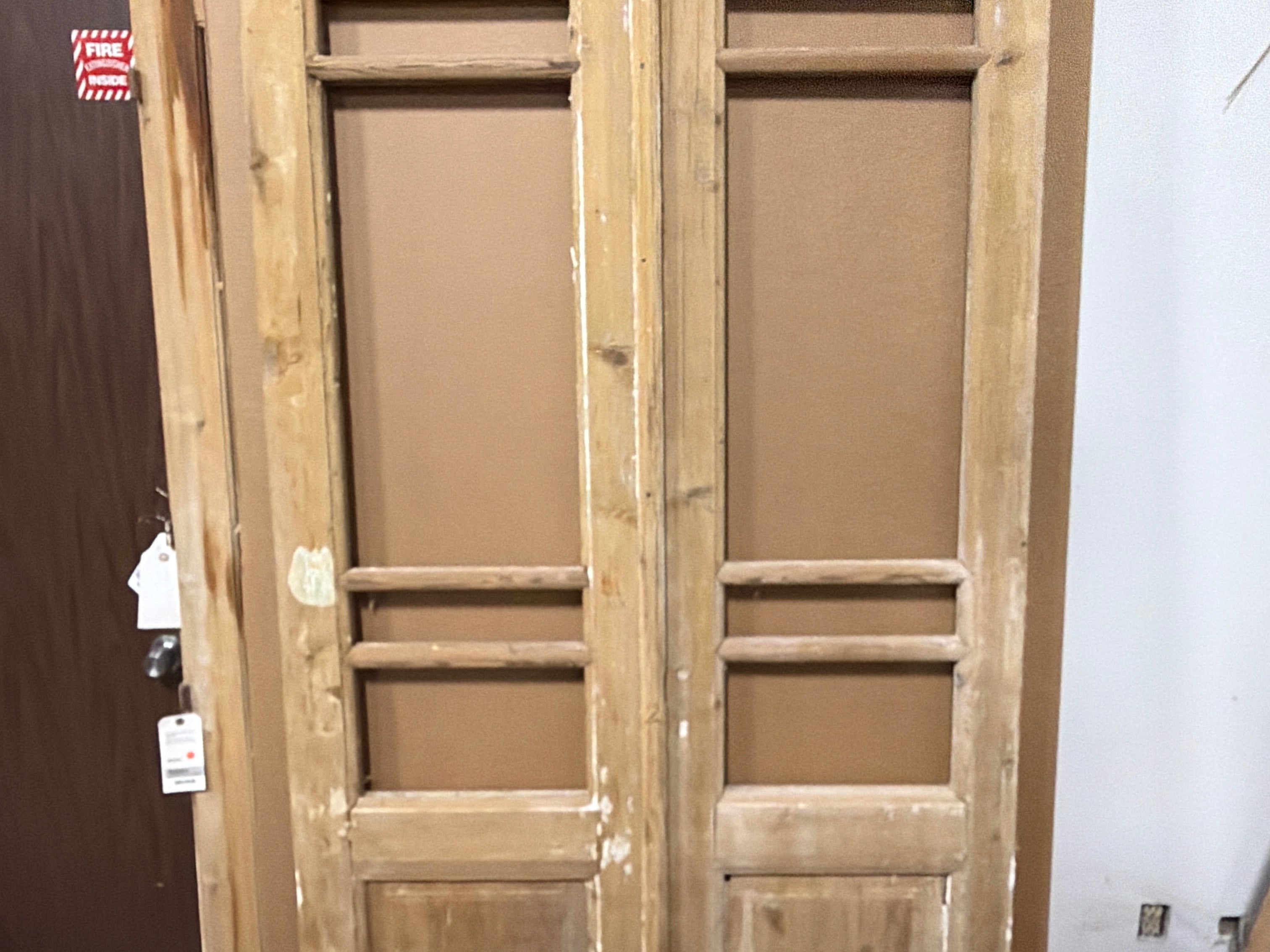 #1288 Doors with Lites in Damaged condition. Dimensions: 42in wide 91in tall 1.75in deep. Sold as a Pair.