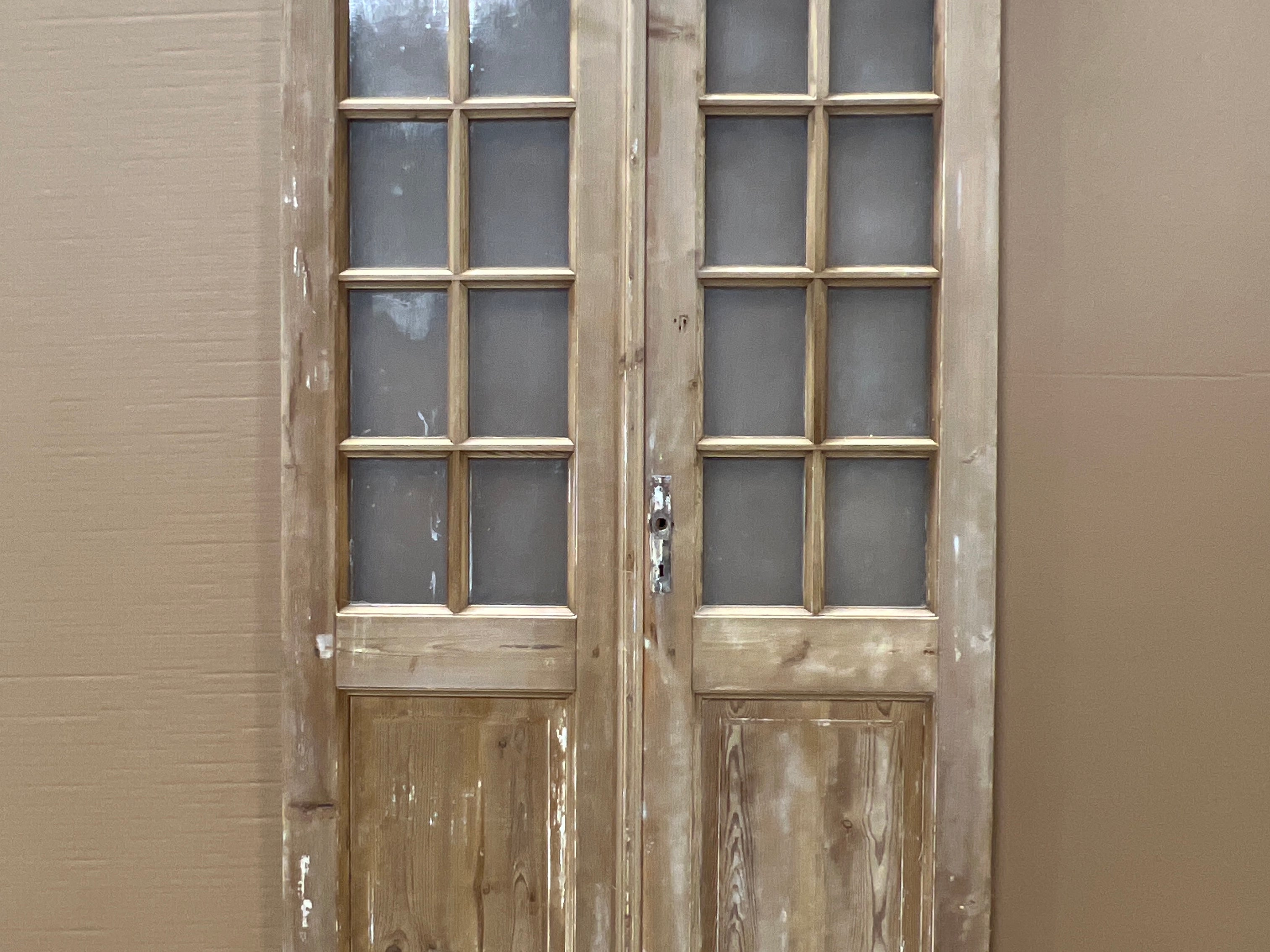 Discover the allure of history with our #1185 Doors with Lites, a distinguished pair that embodies timeless craftsmanship. Measuring 44 inches wide, 96 inches tall, and 1.75 inches deep, each pair is a testament to architectural elegance. These doors, featuring antique glass, not only serve a functional purpose but also add a decorative flair to any interior or exterior setting. Their average condition narrates a story of the past, inviting you to appreciate the intricate details and rich legacy of bygone eras. Perfect for those who value heritage and style.