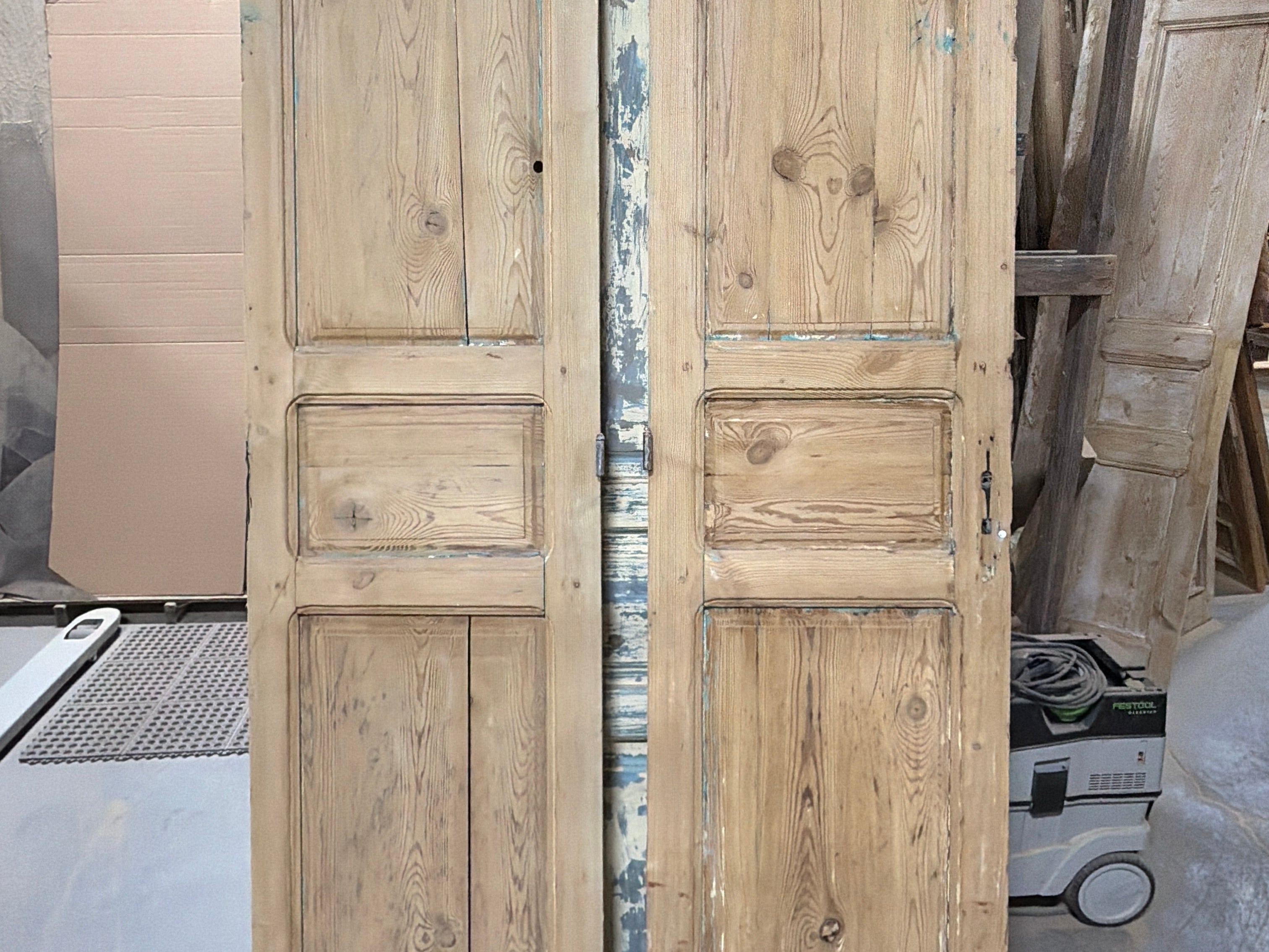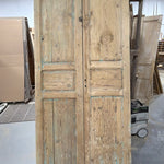 #1264 Doors with Lites in Average condition. Dimensions: 46.5in wide 100in tall 1.75in deep. Sold as a Pair.